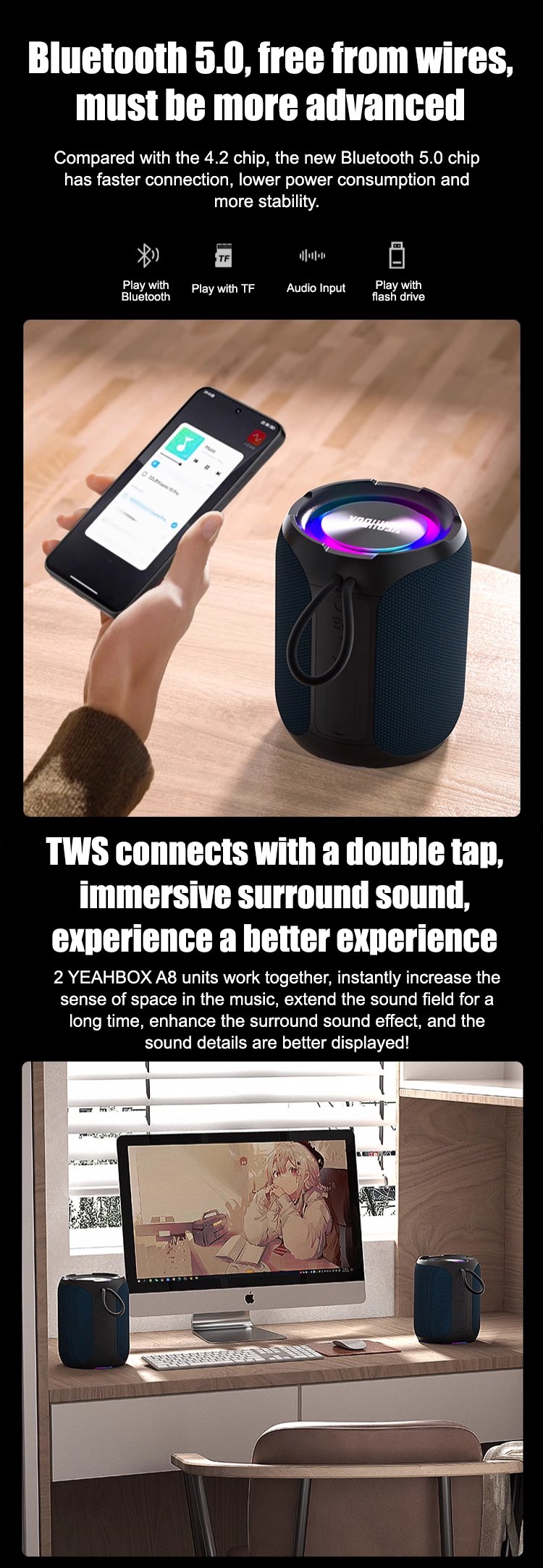 【Audio and video enjoyment】HIFI subwoofer multi-purpose Bluetooth speaker